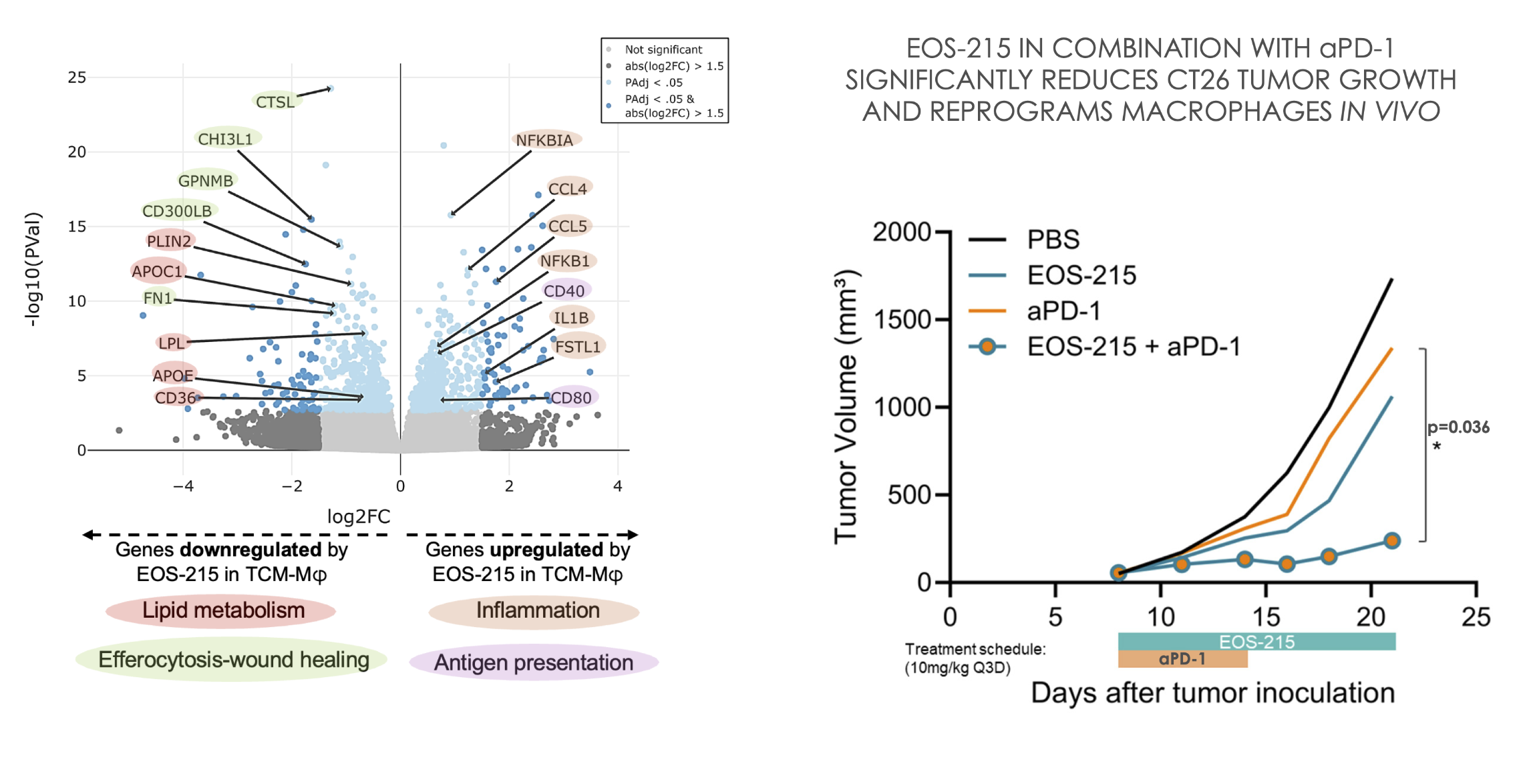 EOS-215 has demonstrated the ability to reverse the multiple pro-tumoral roles of TREM2+ macrophages driving therapy resistance. This creates the opportunity to explore combinations with standard-of-care therapies.7
