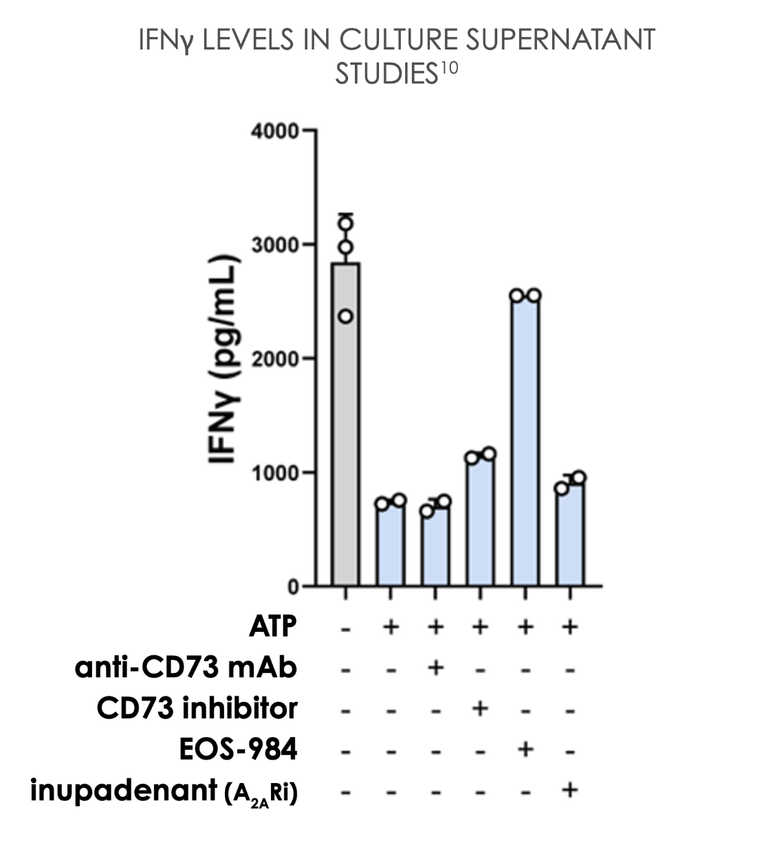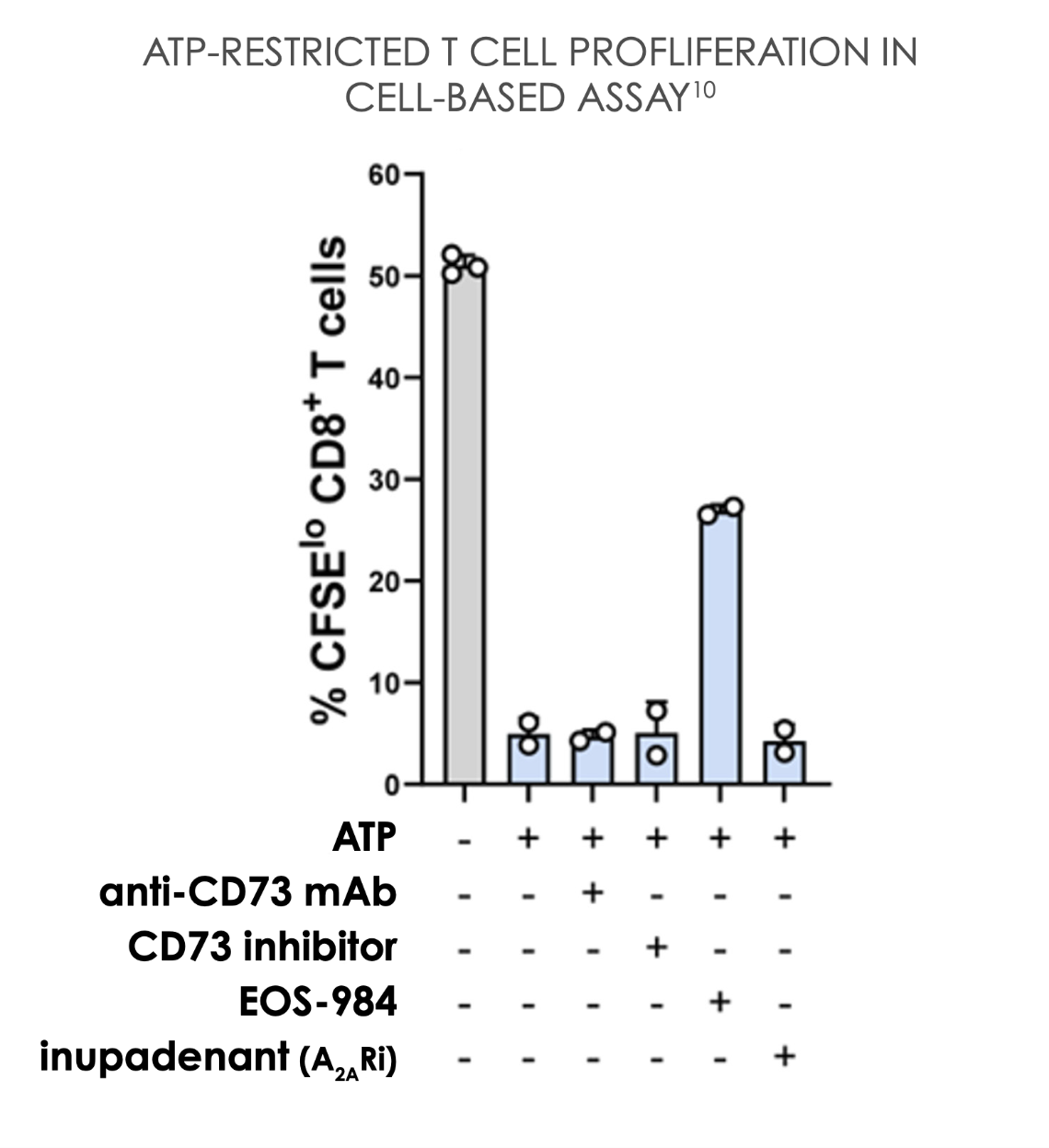EOS-984 provides the most complete rescue of T cell proliferation and pro-inflammatory cytokines in a high-adenosine environment10